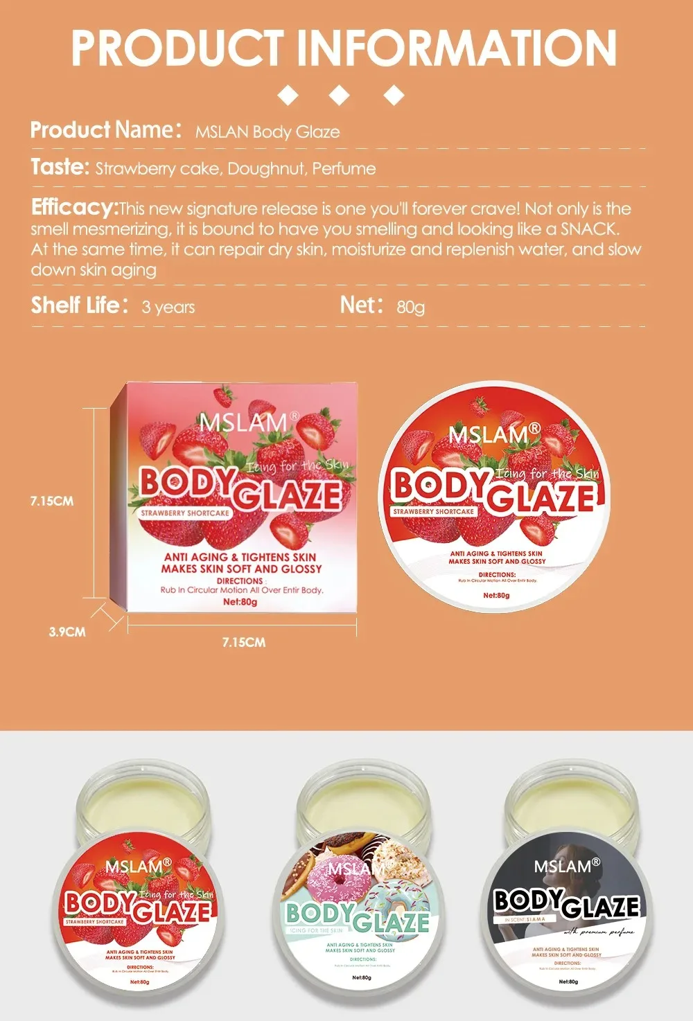 【BODY BUTTER】Body butter is loaded with significant benefits.This leaves skin soft and glossy without being greasy.It tightens the skin and prevents sagging and wrinkling. It’s the ultimate icing for your skin. The texture is creamy and silky. It melts in your hand the way a glazed doughnut melts in your mouth.
