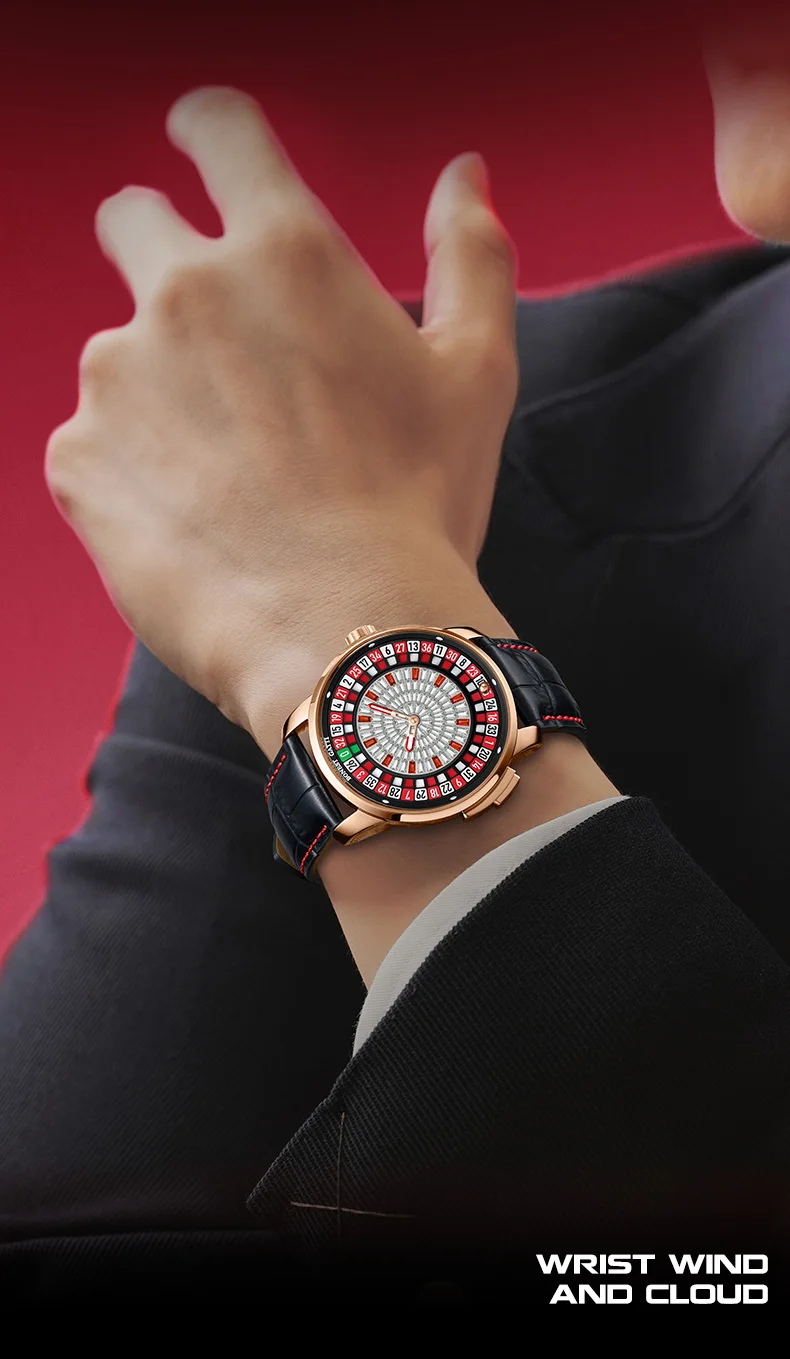 BONEST GATTI European Button Roulette Fun Game Sapphire Glass Diamond Rotating Dial Mechanical Watch Leather Band Men's Watch