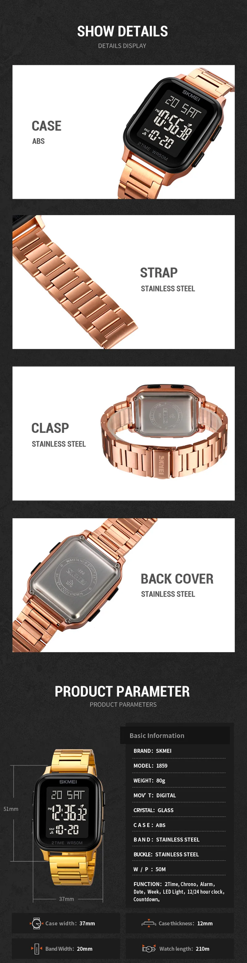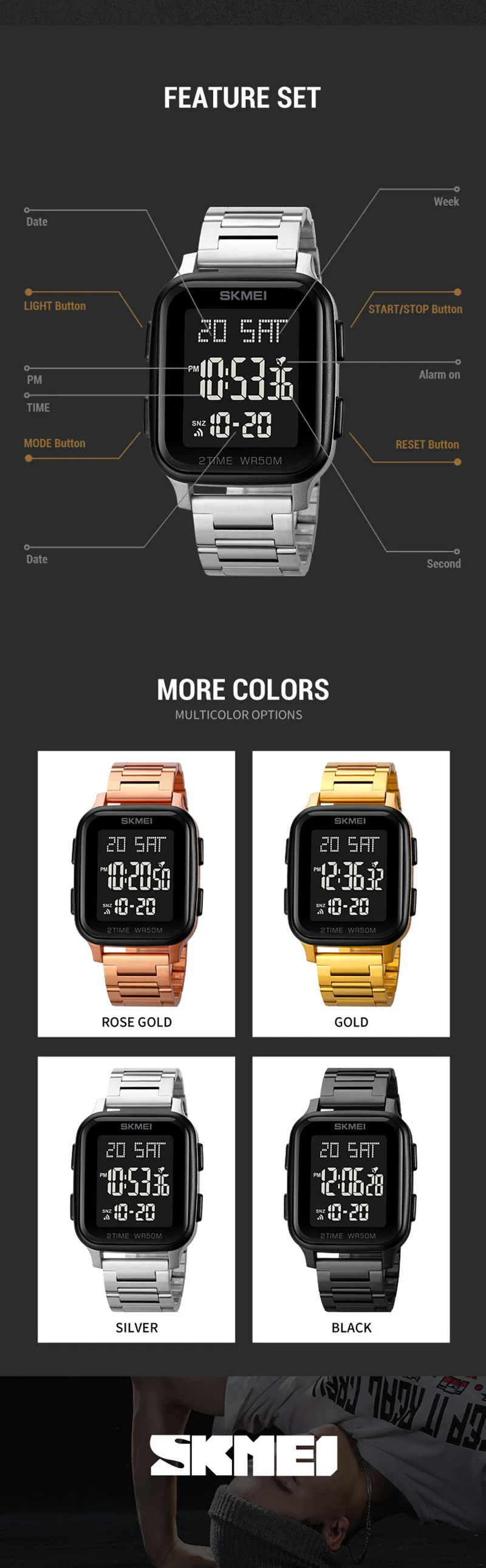 SKMEI Sports Men Watches 50M Waterproof Digital mens Watch Leisure Fashion Electronic Clock LED Screen Wristwatch For Man Women